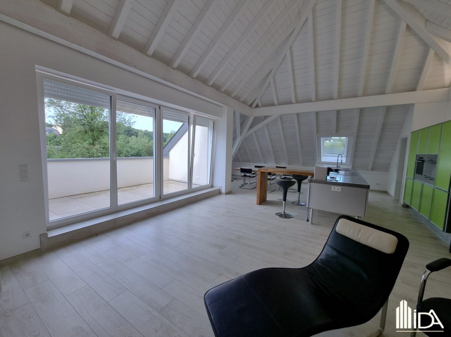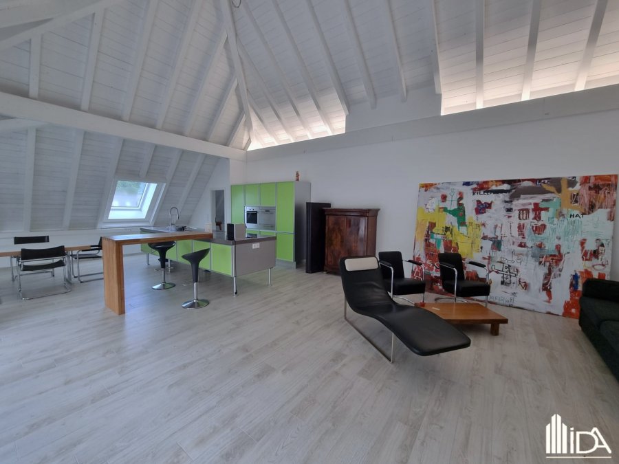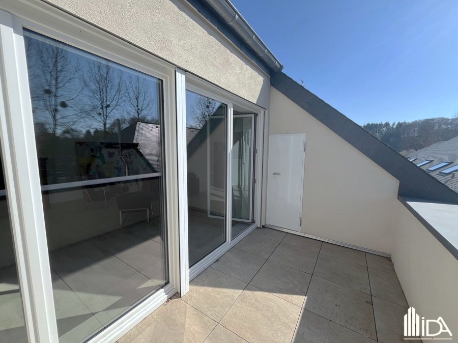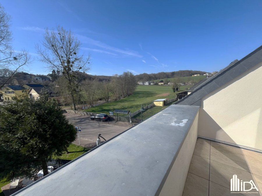 En location, l'Immobilière de l'Attert vous propose ce beau penthouse d'une surface habitable de +/- 125m² (surface totale +/- 166,81 m²) situé dans le village d'Everlange.Le penthouse situé au 2ème étage avec ascenseur privatif se compose de: