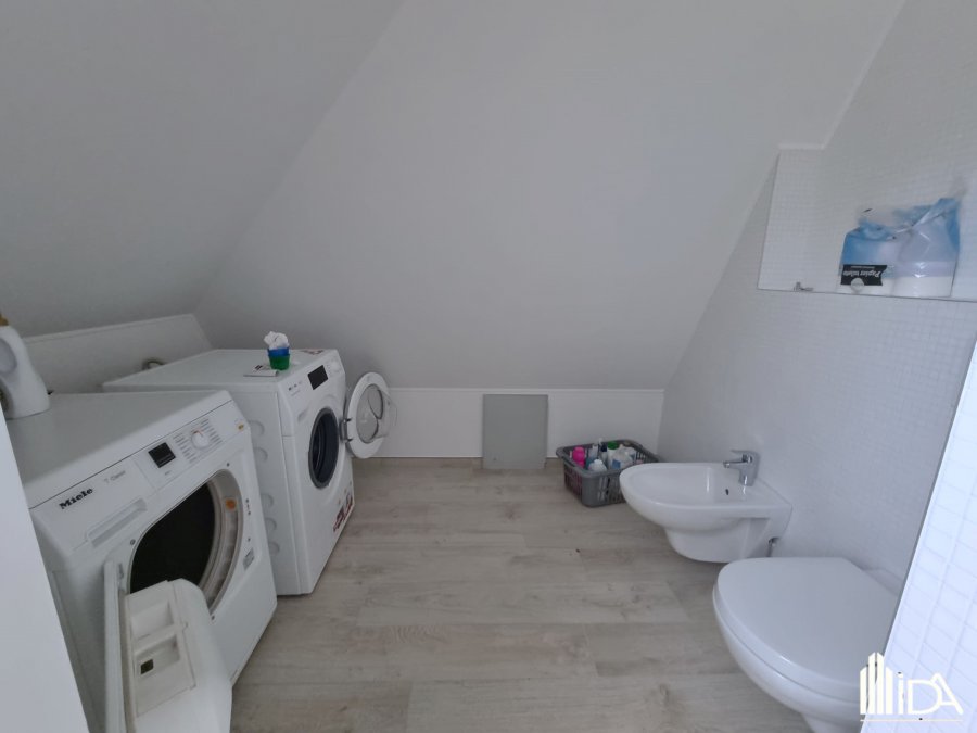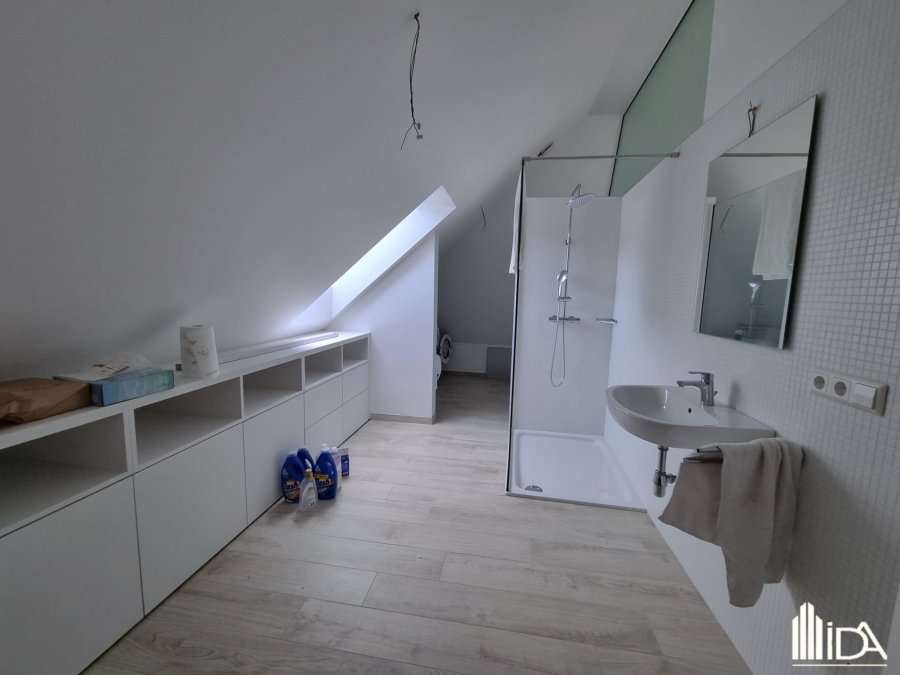 - 1 chambre à coucher avec salle de douche, lavabo, connexion lave-linge et armoires encastrées