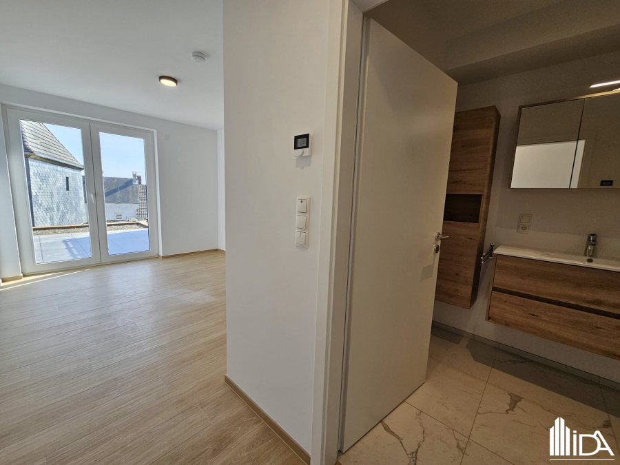 L'Immobilière de l'Attert vous propose en location ce bel appartement à Perlé, commune de Rambrouch.L'appartement situé dans une nouvelle résidence, 1ère occupation, d'une surface habitable de 65,35 m² au rdch se compose de: