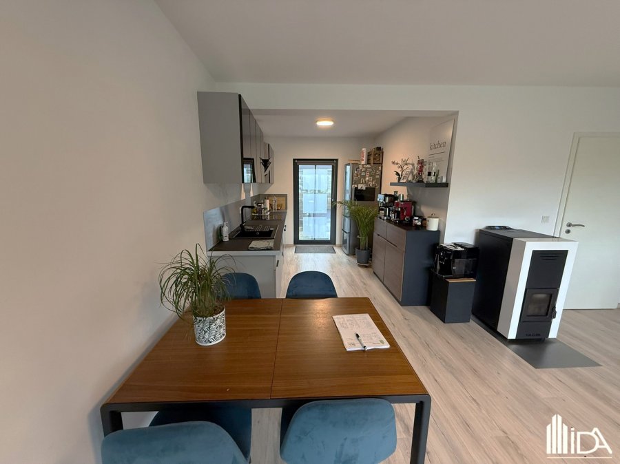 En location, l'Immobilière de l'Attert vous propose ce bel appartement de +/- 63m² dans le village de Wolwelange à +/- 5 minutes de la frontière belge.L'appartement situé au 1er étage se compose de la manière suivante : entrée via le double garage, buanderie / cave et accès vers le 1er étage avec petit hall, beau séjour / salle à manger avec coin cuisine équipée et sortie sur terrasse de +/- 13m², 1 chambre à coucher, bureau et salle de douche, lavabo, wc.