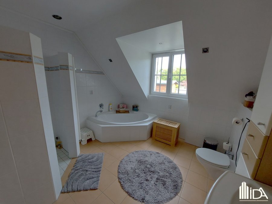 1er étage: d'un hall de nuit, 3 belles chambres à coucher (+/- 19m², 21m², 22m²), d'un bureau (+/- 17m²), et d'une salle de bain avec douche, baignoire, double lavabo et wc.