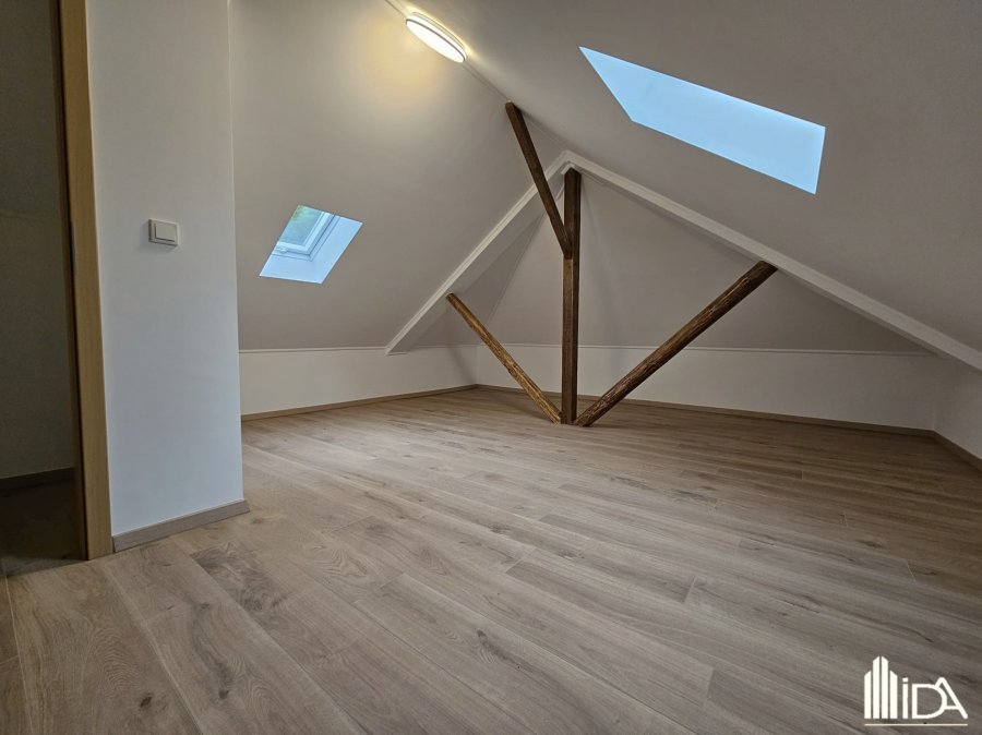 Au grenier vous trouverez un grand espace de +/- 13m² pour loisirs, fitness, salle de jeux........